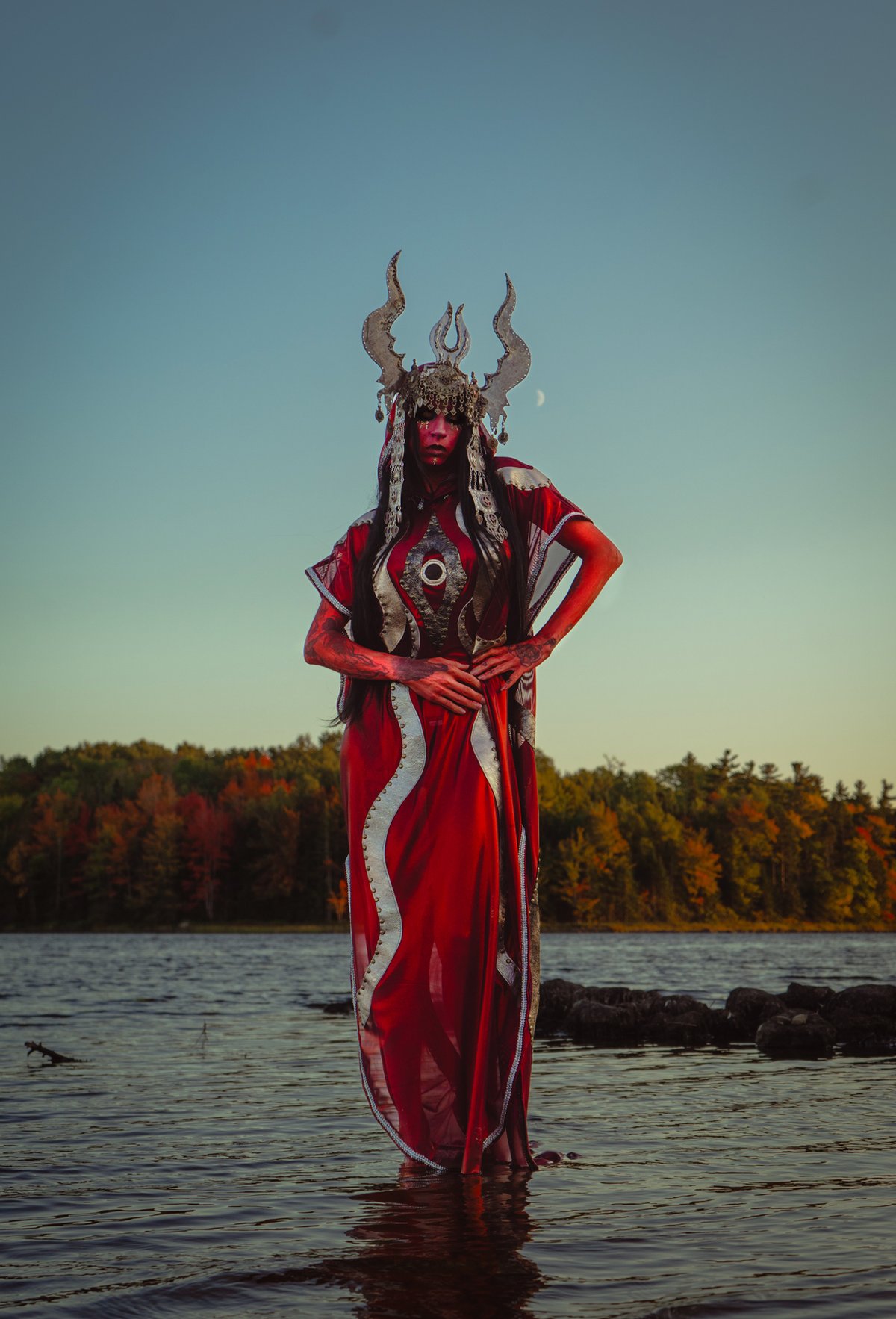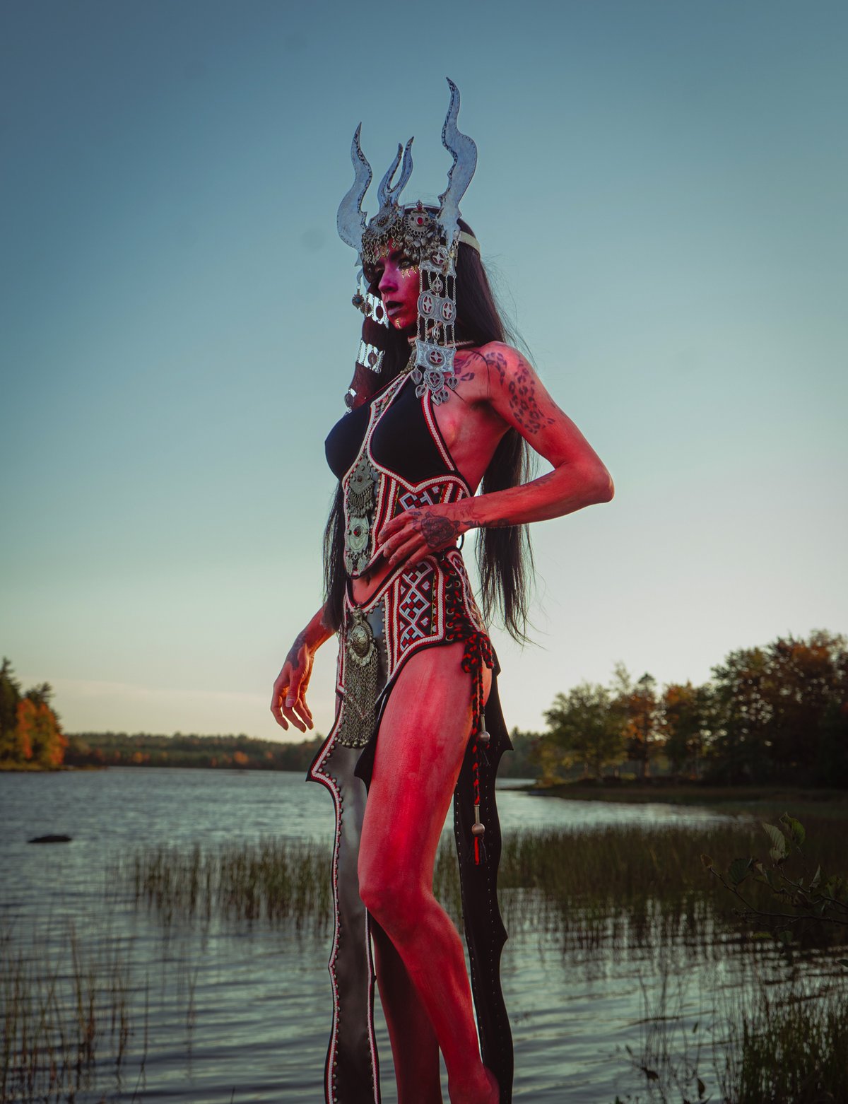 I made this piece from scratch out of sheet metal, adorned in antique pendants and beads and chains.
